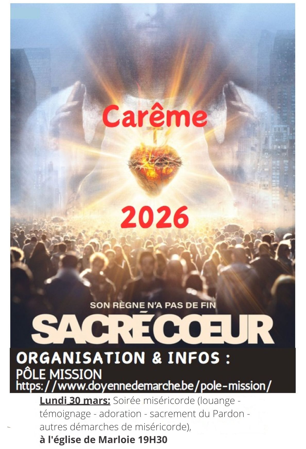 Les équipes pastorales d’animation du doyenné se réjouissent de votre visite A Propos du Doyenné 📩 La revue d’informations « Communications » de Janvier est en ligne ! ✅ Marche : Feuille paroissiale du 19/01 au 25/01 en ligne … ✅ Marloie : Feuille paroissiale du 19/01 au 25/01 en ligne .. Inscription gratuite aux différents bulletins Lien Janvier 21/01 Veillée Oecuménique 25/01 Diner Paroissiale nos secteurs et unite pastorale Unité pastorale Saint-Martin Durbuy HOTTON SECTEUR PAROISSIAL DE MARCHE UNITÉ PASTORALE NASSOGNE ENTRE WAMME ET LHOMME Unité Pastorale saint famille SOMME-LEUZE A L’AGENDA … échos à la Une … Revue Communications de Janvier Lire plus ... Carte du Diocèse Carte du Doyenné Zoom Prières échos de nos activités … Toutes les Vidéos ici ... doyennedemarche@gmail.com > .