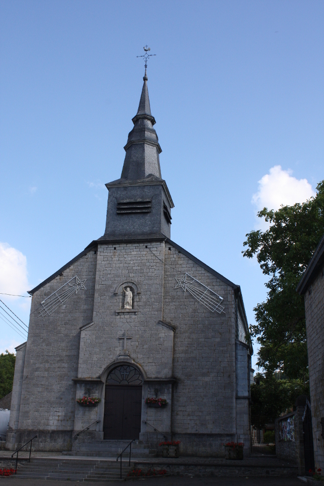 Église néo-classique construite en 1840-44, agrandie en 1907 ; après les dégâts de la Seconde Guerre, elle fut restaurée en 1956 par l’architecte V. Sarlet.